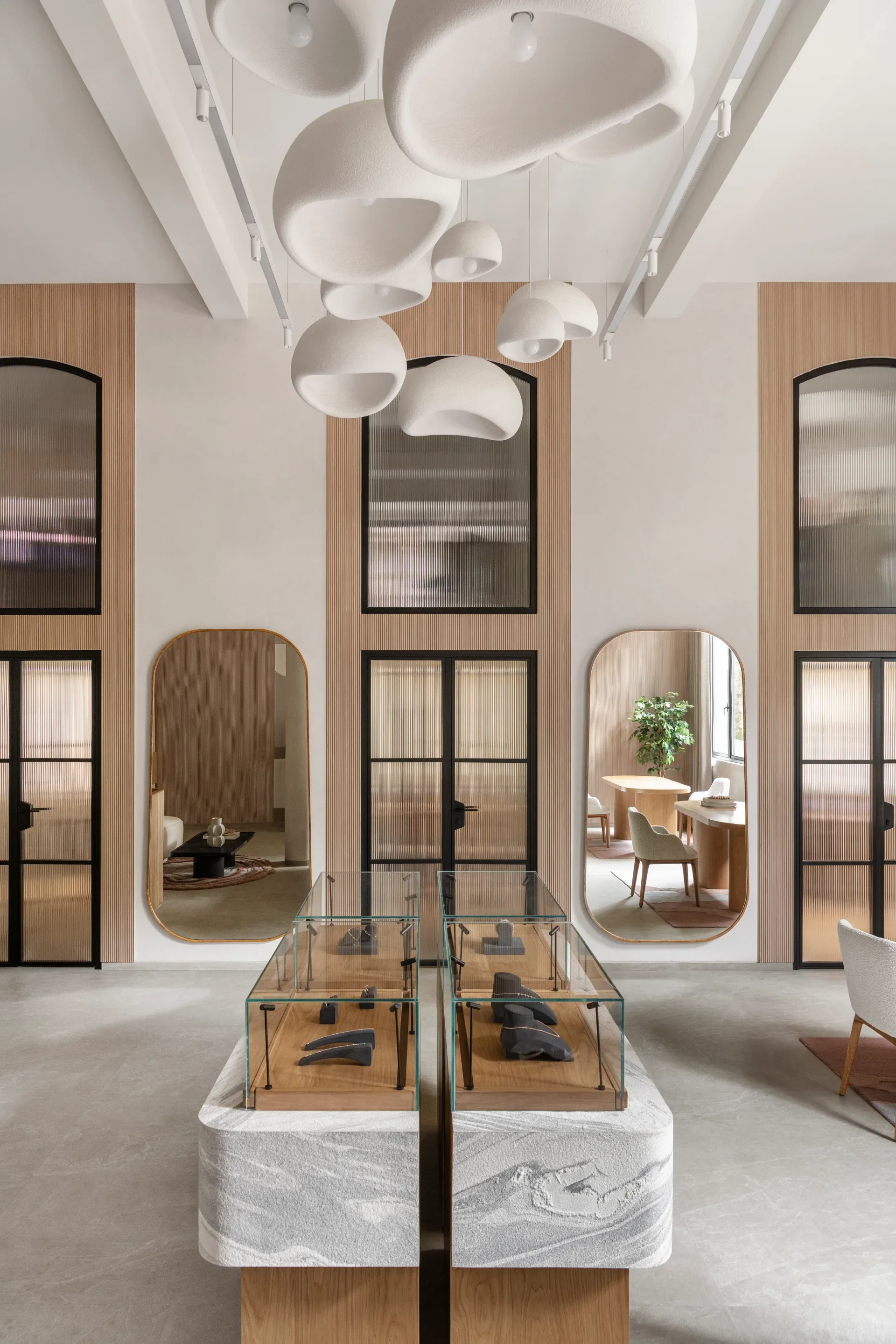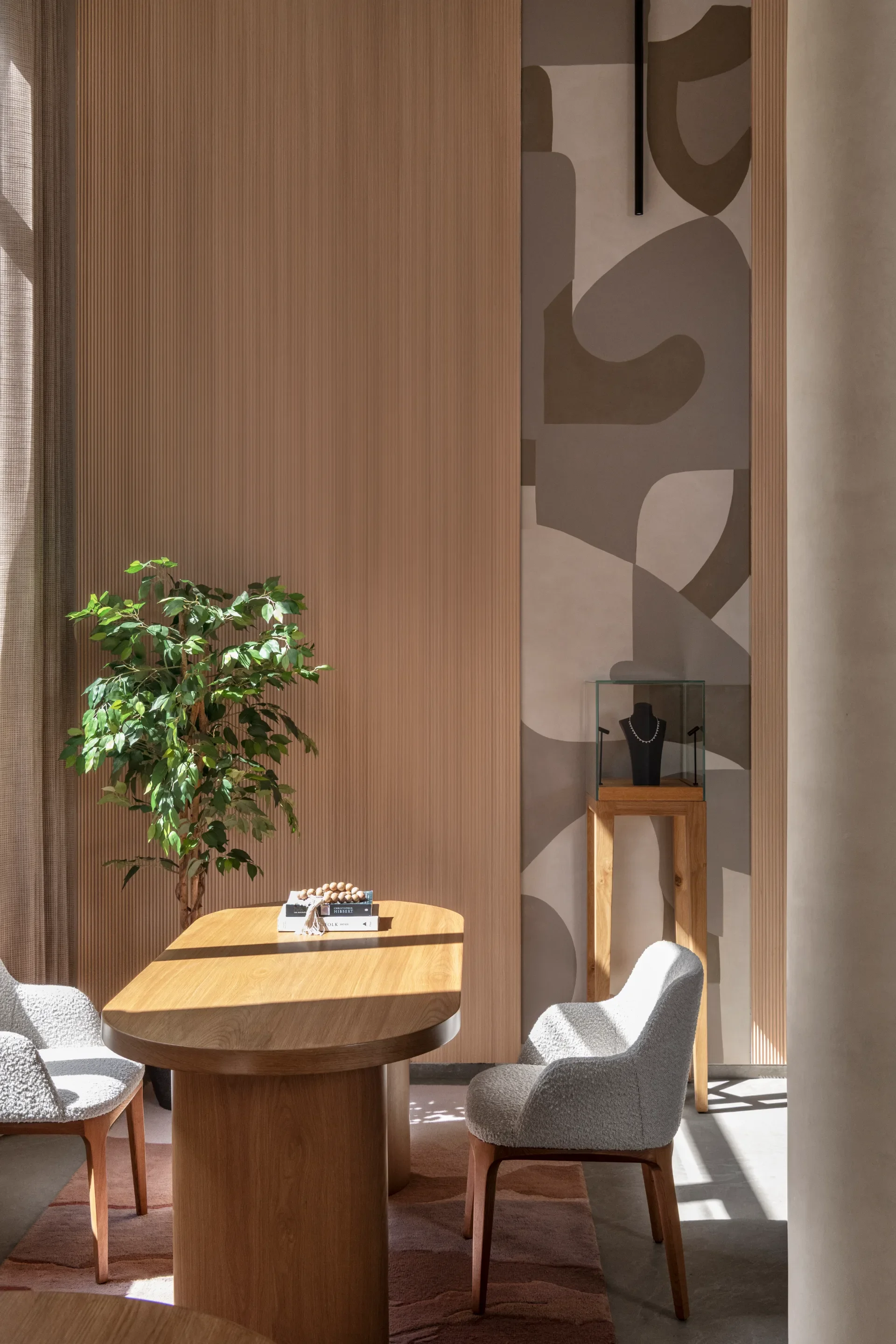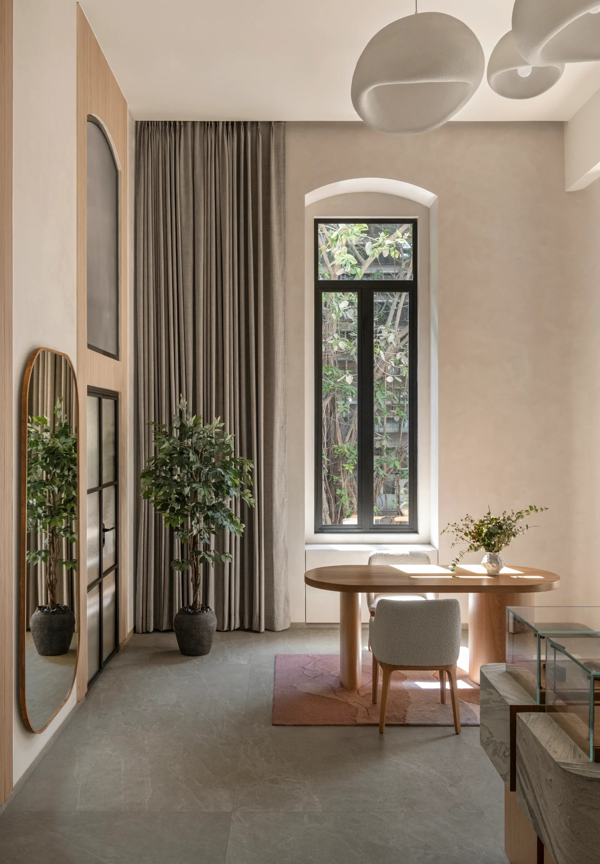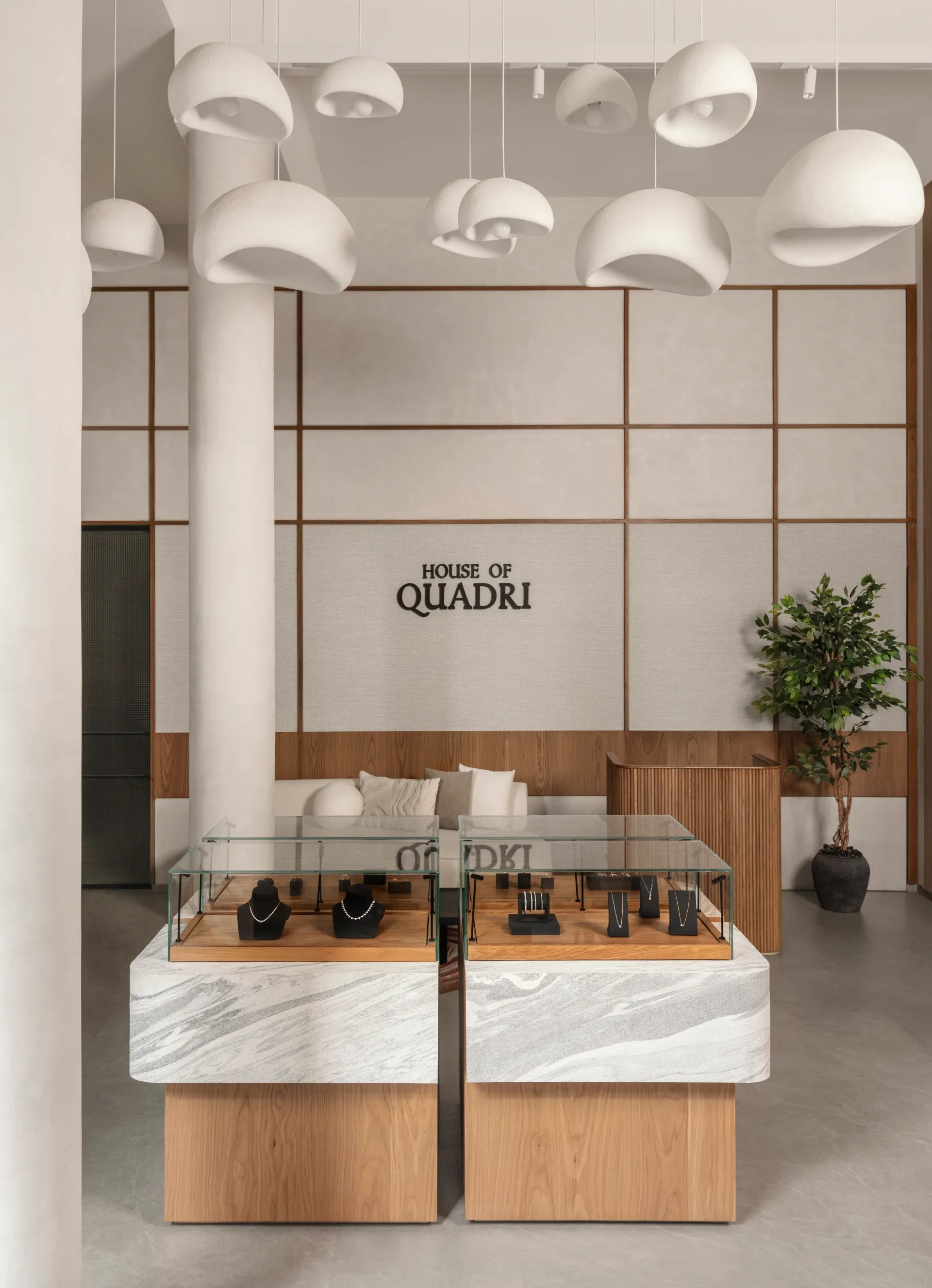 House of Quadri, Mumbai, was envisioned as an intimate, by-appointment retail experience that redefined how jewellery is encountered. Set within a historic context, the space balances contemporary minimalism with warmth, using earthy tones, tactile materials, and sculptural displays. Designed to slow the pace, it creates a considered environment where craftsmanship, conversation, and discovery unfold with quiet intention.