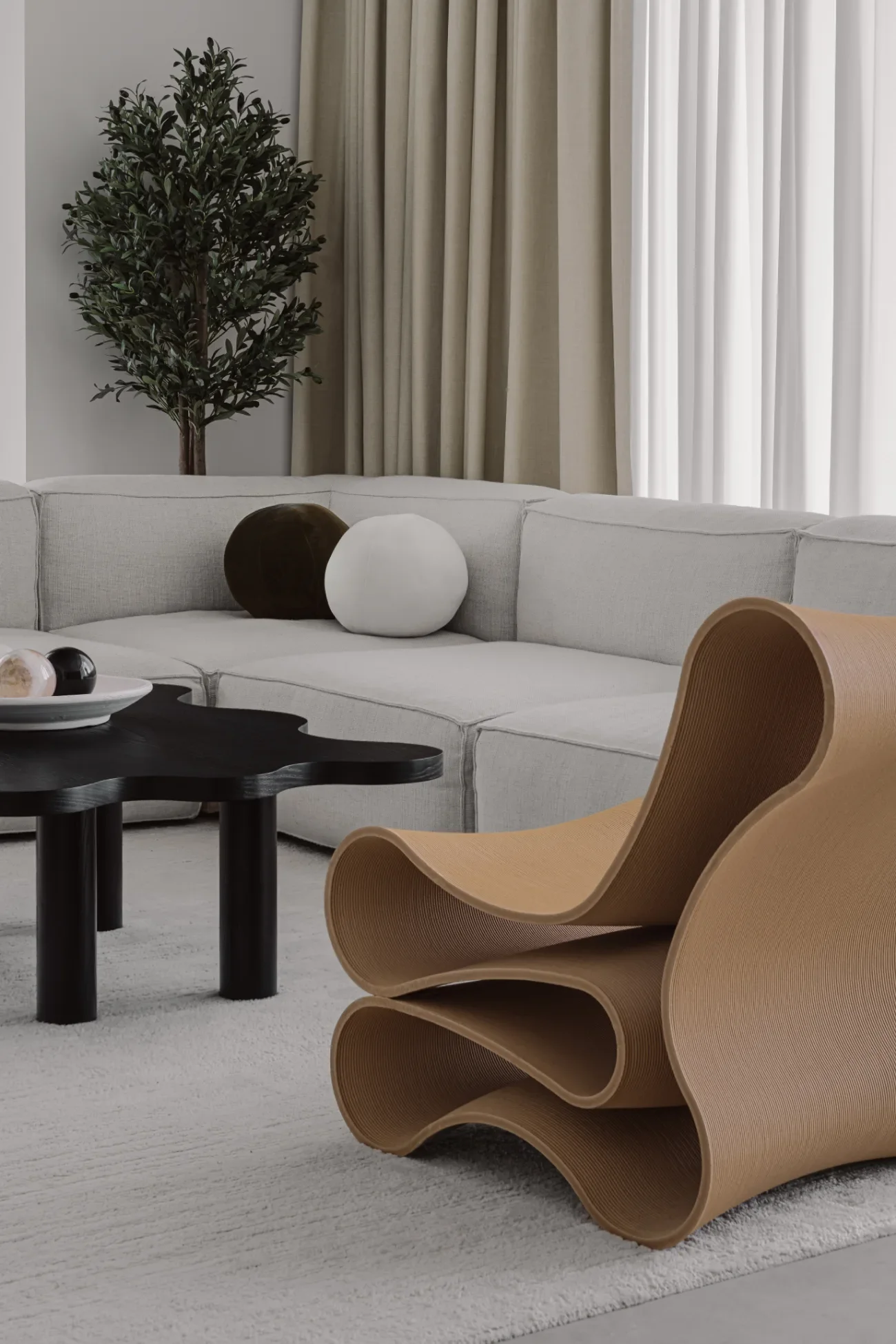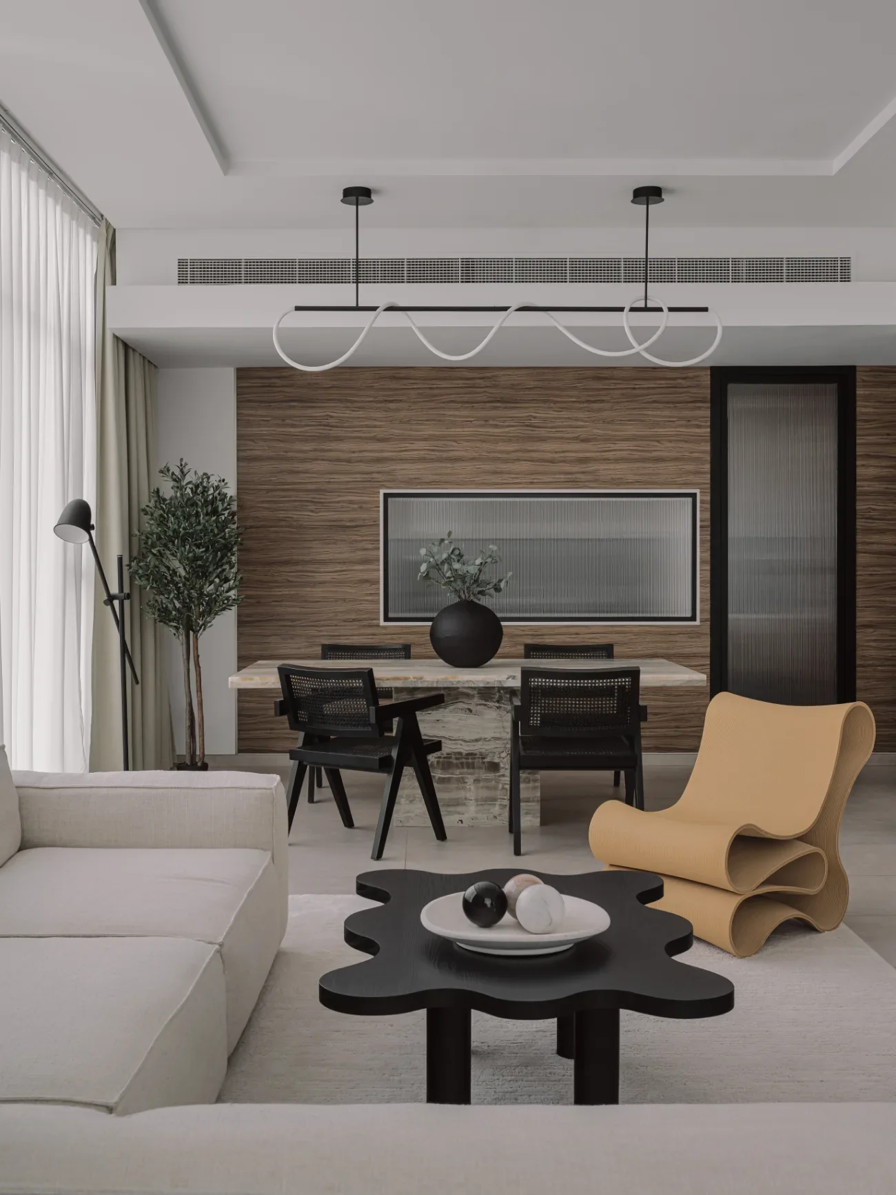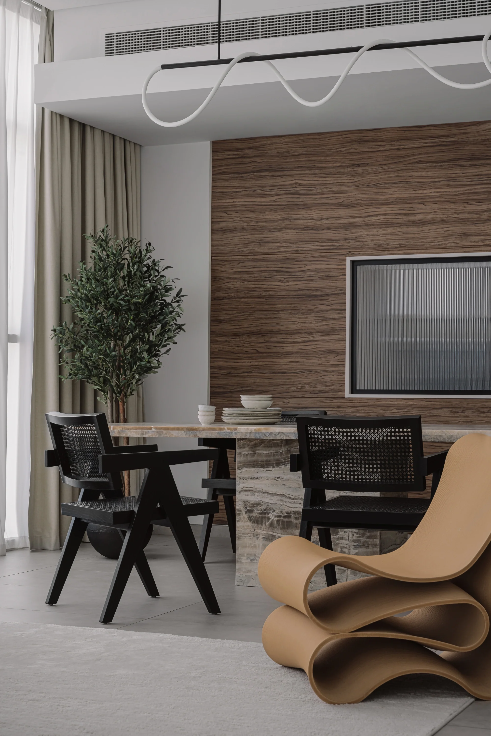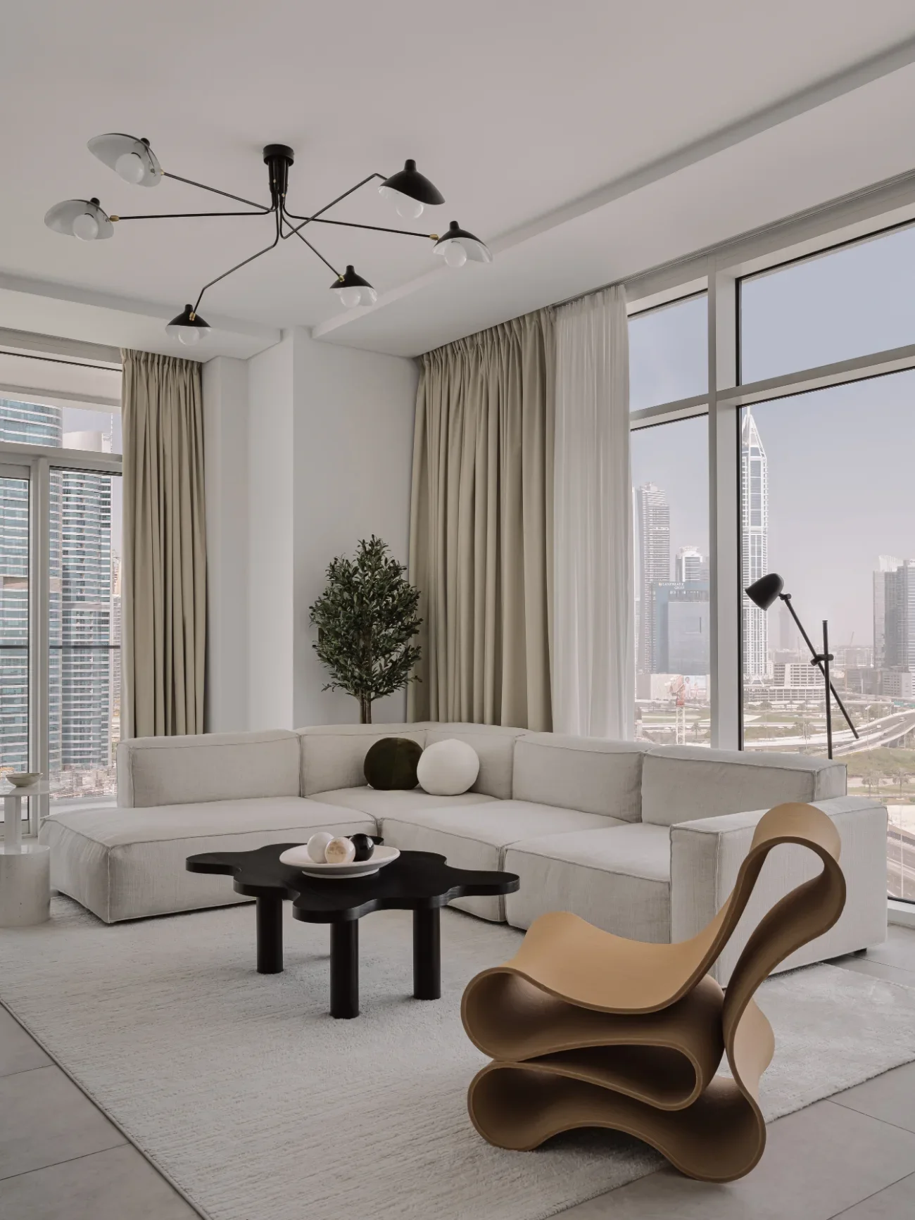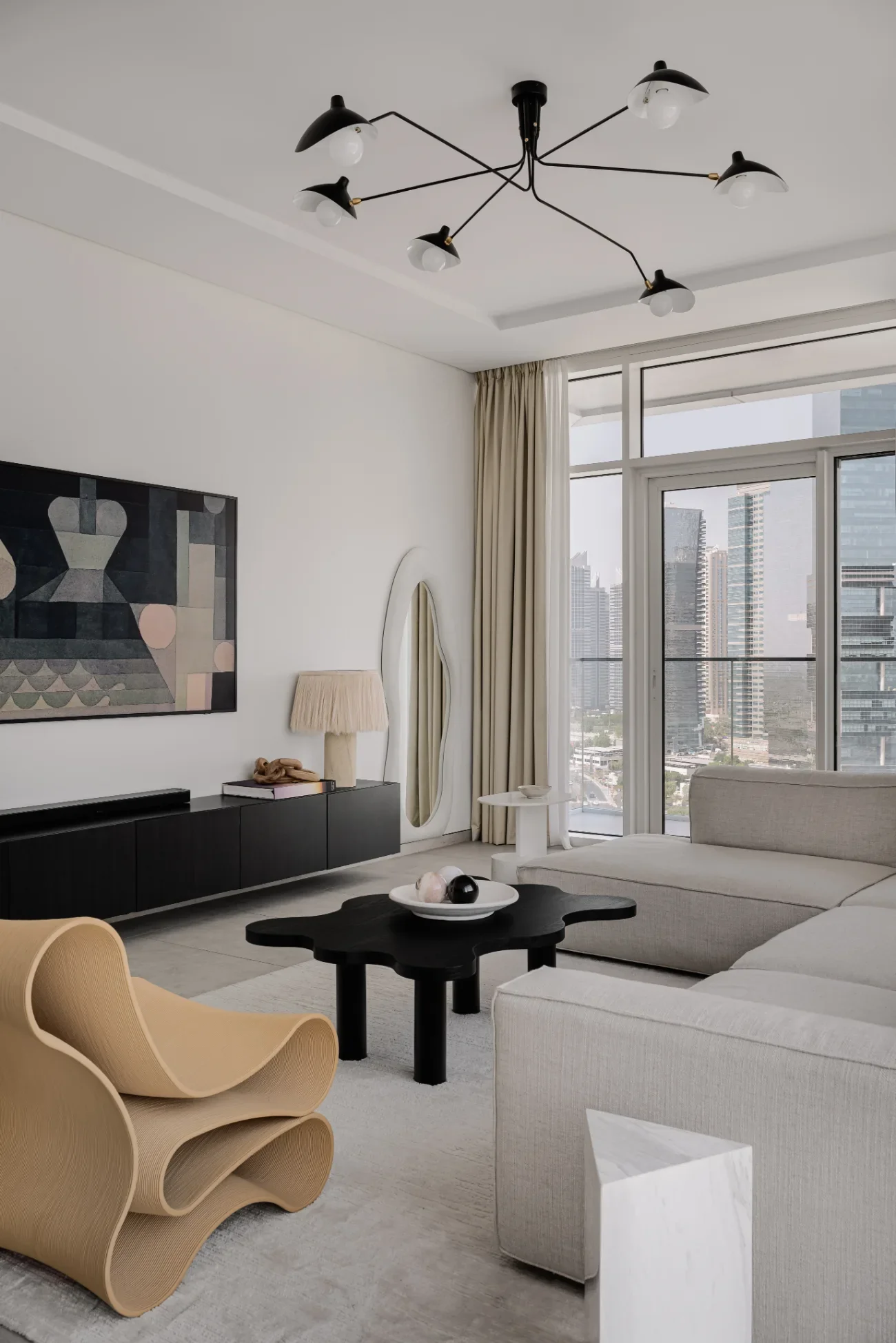 Set against Dubai’s expansive skyline, this home is conceived as a calm counterpoint to the city’s intensity. The design balances openness with intimacy, layering soft materials, muted tones, and thoughtful detailing to create a residence that feels both expansive and deeply personal - a modern sanctuary shaped by light, ease, and intention.