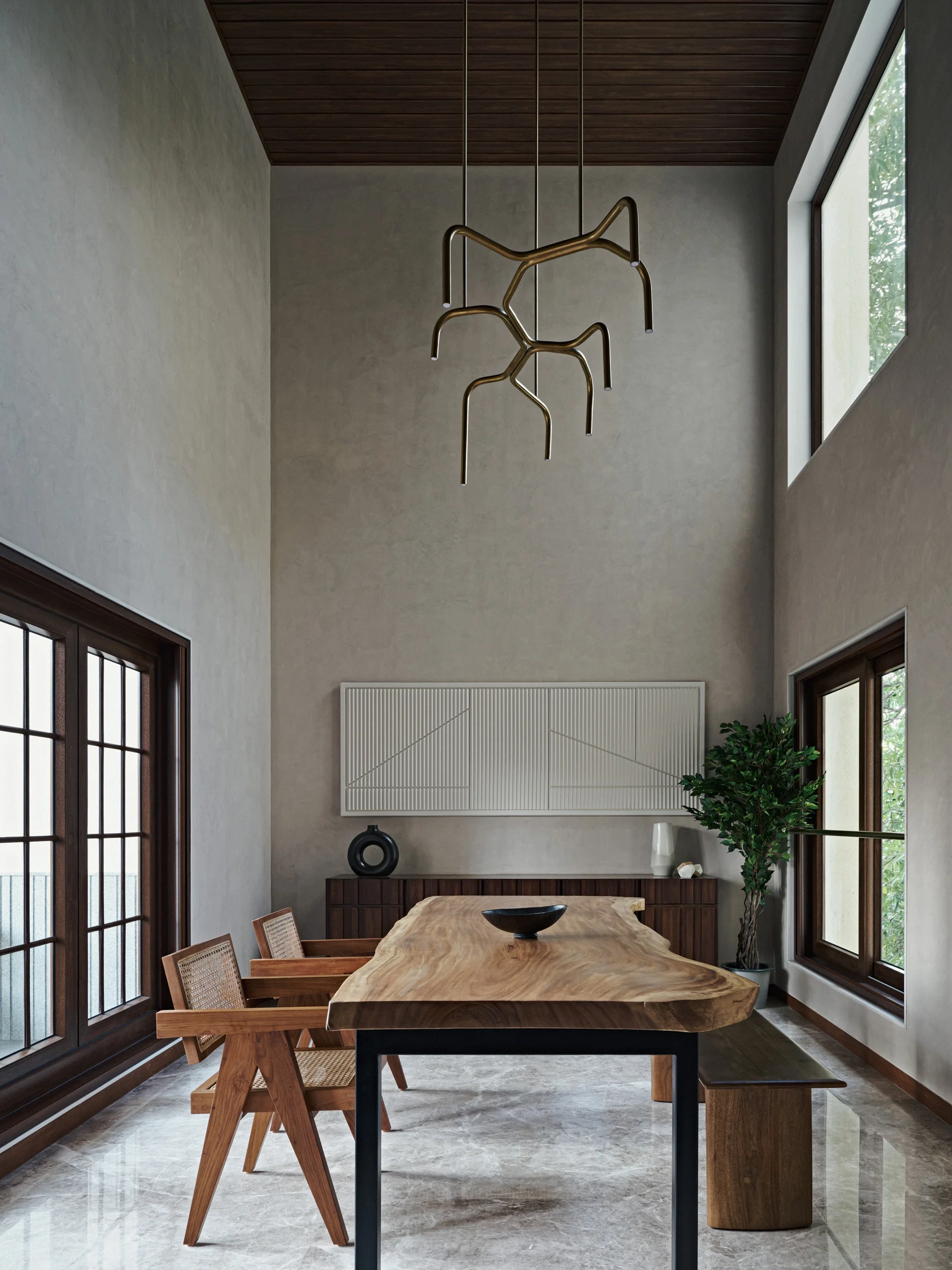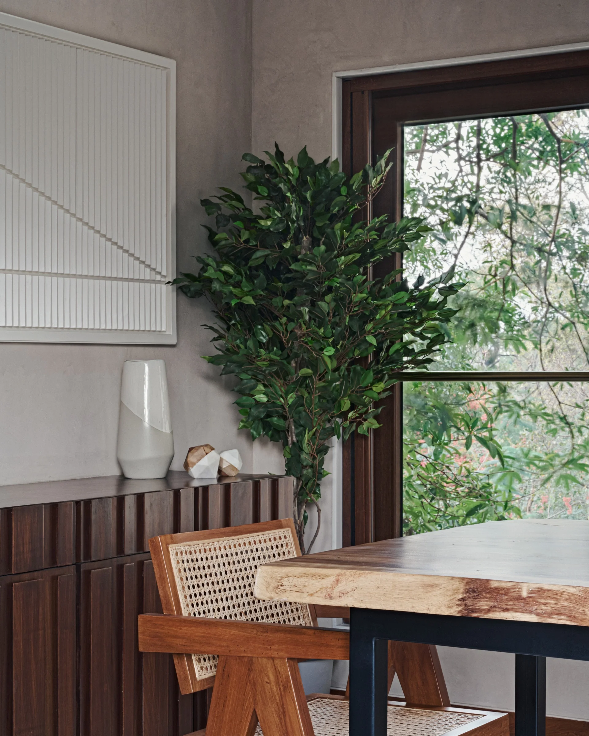 This serene residence in Pune redefines comfort through nature, rooted in minimalism and thoughtful design. It uses natural materials, warm tones, and open views of greenery to create a calm, nostalgic living environment. Indoor spaces blend seamlessly with lush surroundings, emphasizing simplicity, comfort, harmony, and a deep connection to landscape.
